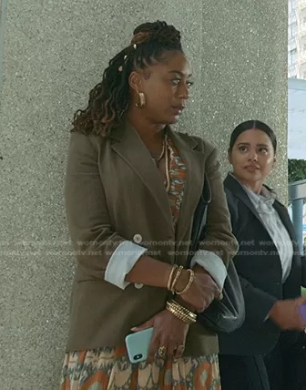 Malika Williams (played by Zuri Adele) on Good Trouble on Freeform was spotted wearing this orange printed dress on Good Trouble on episode 'A Penny With a Hole In It' (4x13) in Jul 2022. Malika's Dress is the Samara Dress in Nimbus by Ulla Johnson.