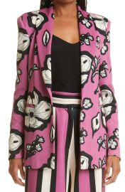 on Good Morning America on ABC was spotted wearing this pink floral blazer on Good Morning America on Jul 28 2022's episode. 's Jacket is the Avys Blazer by Kimberly Goldson.