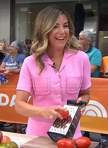 on Today on NBC was spotted wearing this pink polo dress on Today on Jul 29 2022's episode. 's Dress is the Radene Braid-Trim Minidress by Maje.