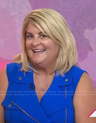 on Today on NBC was spotted wearing this blue zip front sleeveless dress on Today on Aug 01 2022's episode. 's Dress is the Moto Tank Dress in Capri by Calvin Klein.