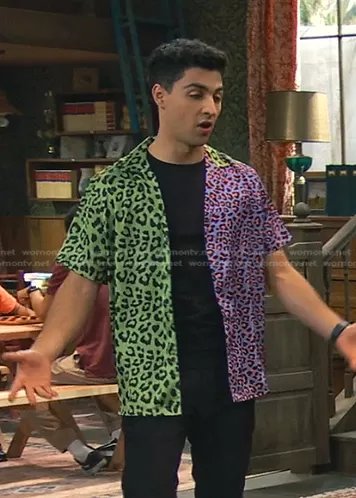 Parker Preston (played by Trevor Tordjman) on Bunkd on Disney was spotted wearing this multicolor leopard shirt on Bunkd on episode 'Back in the Saddle' (6x08) in Aug 2022. Parker's Shirt is the Relaxed Revere Shirt in Color Block Leopard Print by Asos.
