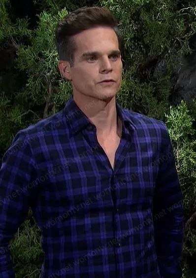 Leo Stark (played by Greg Rikaart) on Days of our Lives on Peacock was spotted wearing this purple plaid shirt on Days of our Lives on Jul 29 2022's episode. Leo's Shirt is the Reid Trim Fit Plaid Sport Shirt by Hugo.