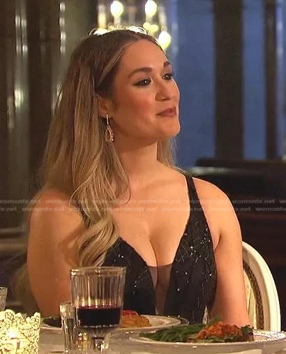 Rachel Recchia on The Bachelorette on ABC was spotted wearing this black embellished gown on The Bachelorette on episode 'Week 4' (19x04) in Aug 2022. Rachel's Dress is the Filippa Dress by Alamour The Label.