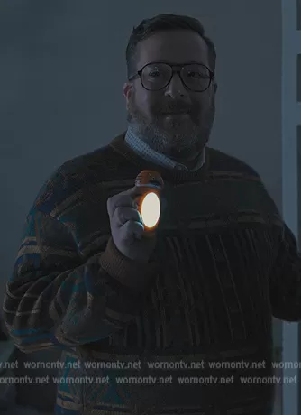 (played by Michael Cyril Creighton) on Only Murders in the Building on Hulu was spotted wearing this geometric print sweater sweater on Only Murders in the Building on episode 'Hello Darkness' (2x08) in Aug 2022. 's Sweater is the Geometric Jacquard Sweater by Zara.