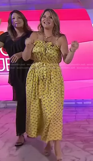 Jenna Bush Hager on Today on NBC was spotted wearing this yellow floral midi dress on Today on Sep 02 2022's episode. Jenna's Dress is the Ruffle Top Dress by Tory Burch.