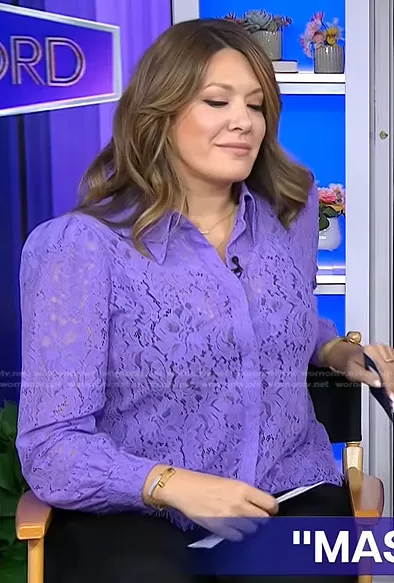 on Today on NBC was spotted wearing this purple lace blouse on Today on Sep 02 2022's episode. 's Top is the Jenica Lace Blouse by L'Agence.