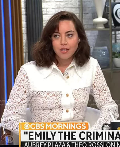 on CBS Mornings on CBS was spotted wearing this white lace button down shirt on CBS Mornings on Aug 09 2022's episode. 's Top is the Floral Lace Shirt by Louis Vuitton.