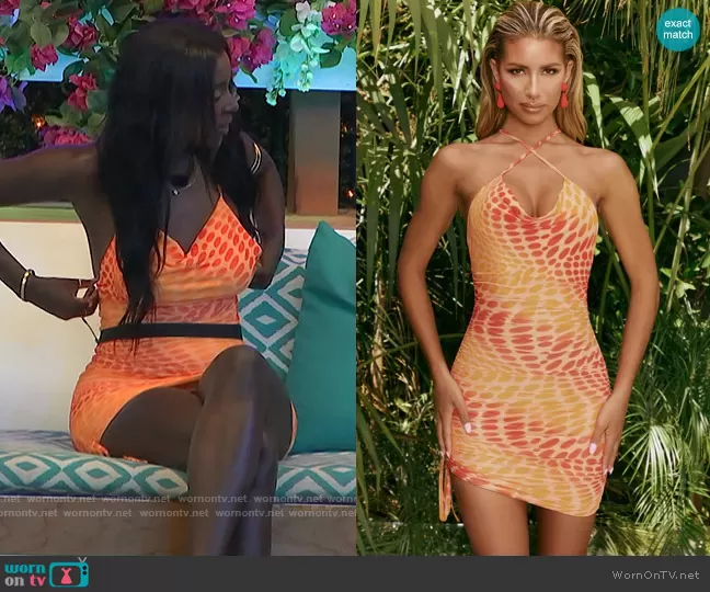 Zeta Morrison on Love Island USA on Peacock was spotted wearing this orange dot dress on Love Island USA on Aug 10 2022's episode. Zeta's Dress is the Feel The Groove Dress by Oh Polly.