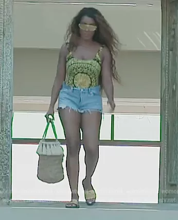 Caroline Brooks (played by Caroline Brooks) on The Real Housewives of Dubai on BravoTV was spotted wearing this baroque print swimsuit and bag on The Real Housewives of Dubai on episode 'Girls Trippin'' (1x10) in Aug 2022. Caroline B's Swimsuit is the Barocco One-Piece Swimsuit by Versace . Caroline B's Bag is the Wilmington Tote by Florabella.