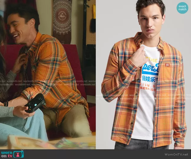 Paxton Hall-Yoshida (played by Darren Charles Barnet) on Never Have I Ever on Netflix was spotted wearing this orange plaid shirt on Never Have I Ever on episode 'had my own troll' (3x02) in Aug 2022. 's Shirt is the Organic Cotton Lumberjack Check Shirt by Superdry.