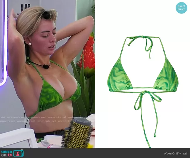 Mackenzie Dipman on Love Island USA on Peacock was spotted wearing this green marble print bikini on Love Island USA on Aug 18 2022's episode. Mackenzie's Top is the Green Abstract Print String Padded Triangle Bikini Top by Pretty Little Thing . Mackenzie's Bottoms is the .