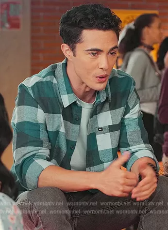 (played by ) on Never Have I Ever on Netflix was spotted wearing this blue plaid shirt on Never Have I Ever on episode 'Lived the Dream' (3x10) in Aug 2022. 's Shirt is the Motherfly Long Sleeve Flannel Shirt by Quiksilver.