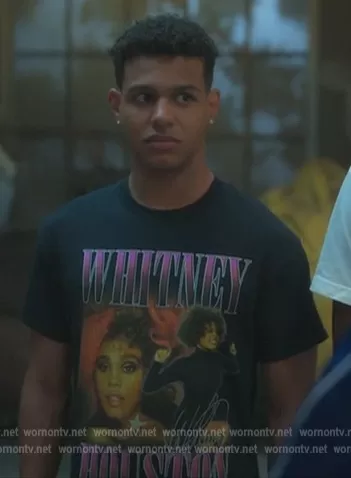 (played by ) on Grown-ish on Freeform was spotted wearing this black Whitney Houston graphic tee on Grown-ish on episode 'Frat Rules' (5x06) in Aug 2022.