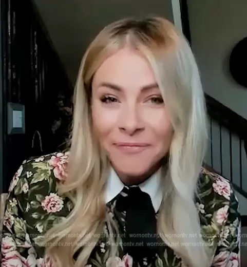 on Extra on Extra was spotted wearing this floral print blouse with contrast bow on Extra on Aug 25 2022's episode. 's Top is the Floral Blouse with Pearl Buttons by Zara.
