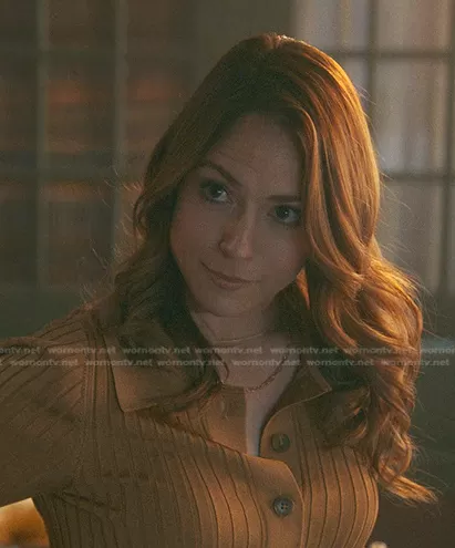 Ryan Jones (played by Brooke Nevin) on Good Trouble on Freeform was spotted wearing this brown ribbed polo top on Good Trouble on episode 'Wake Up From Your Reverie' (4x17) in Aug 2022. 's Top is the Plaited Rib Polo Shirt by Good American.