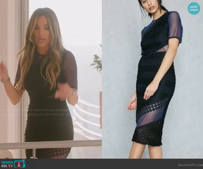 Alex Halll (played by Alex Hall) on Selling the OC on Netflix was spotted wearing this mesh panelled dress on Selling the OC on episode 'Paradise Comes with a Price' (1x01) in Aug 2022. Alex's Dress is the Mesh Detail Honeycomb Airtex Dress by Topshop.