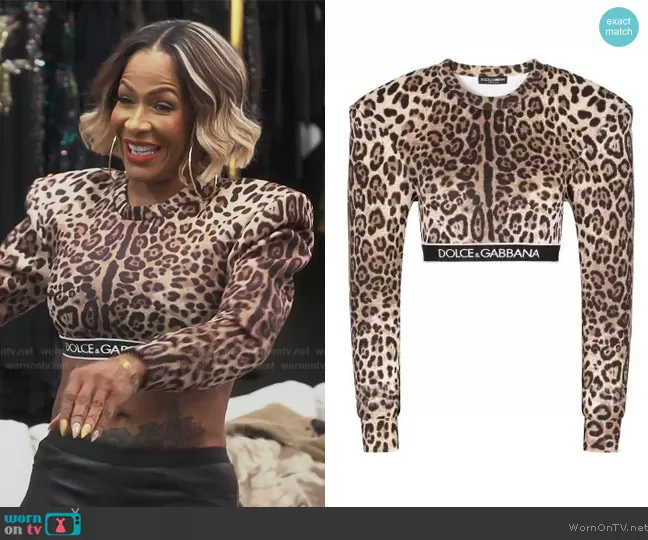 Sheree Whitefield on The Real Housewives of Atlanta on Bravo was spotted wearing this leopard print crop top on The Real Housewives of Atlanta on episode 'It’s Expensive to Be She' (14x16) in Aug 2022. Sheree's Top is the Leopard-Print Cropped Top by Dolce & Gabbana.