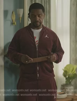 (played by Rolando Boyce) on The Chi on ShowTime was spotted wearing this velour Air Jordan jacket on The Chi on episode 'I'm Looking For A New Thing' (5x09) in Aug 2022. 's Jacket is the Velour Full Zip Jacket by Air Jordan . 's Pants is the Velour Pants by Air Jordan.