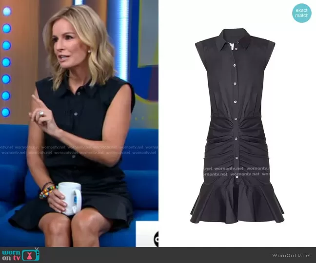 Dr. Jennifer Ashton on Good Morning America on ABC was spotted wearing this black sleeveless shirtdress on Good Morning America on Jun 04 2024's episode. Jennifer's Dress is the Bell Ruched Shirtdress by Veronica Beard.