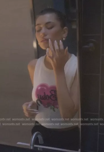 (played by Amelie Zilber) on Grown-ish on Freeform was spotted wearing this white cropped baby print tank on Grown-ish on episode 'Love on the Brain' (5x07) in Sep 2022. 's Top is the Baby Open-Back Tank Top by Urban Outfitters.