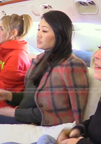 Crystal Kung Minkoff on The Real Housewives of Beverly Hills on Bravo was spotted wearing this brown plaid mohair jacket on The Real Housewives of Beverly Hills on episode 'Altitude Adjustment' (12x16) in Sep 2022. Crystal's Coat is the Denim & Mohair Layered Coat by Jonathan Simkhai Standard.
