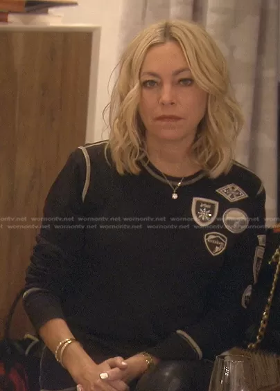 Sutton Stracke on The Real Housewives of Beverly Hills on Bravo was spotted wearing this black patch top on The Real Housewives of Beverly Hills on episode 'Altitude Adjustment' (12x16) in Sep 2022.