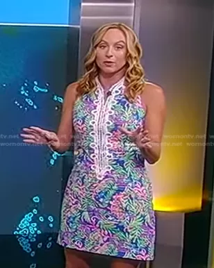 on Good Morning America on ABC was spotted wearing this blue printed embroidered trim dress on Good Morning America on Sep 05 2022's episode. 's Dress is the Alexa Stretch Shift Dress by Lilly Pulitzer.
