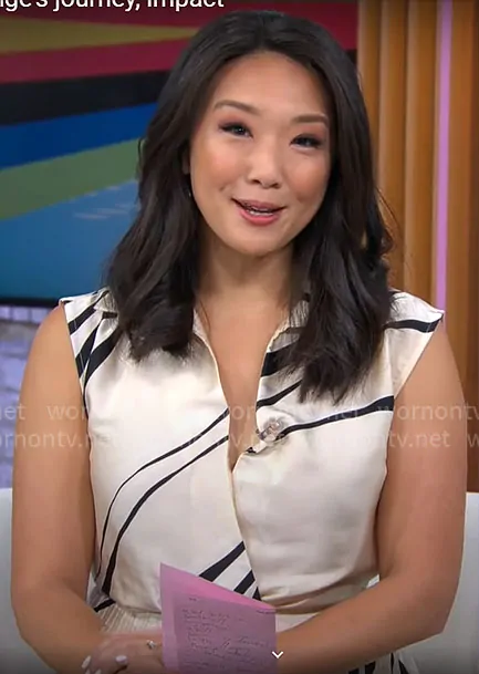 Nancy Chen’s wavy stripe pleated dress on CBS Mornings