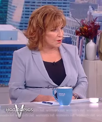 Joy Behar on The View on ABC was spotted wearing this embellished waist blazer on The View on Sep 07 2022's episode. Joy's Blazer is the Loisa Embellished Blazer by Cinq a Sept . Joy's Pants is the Loisa Embellished Slit-Cuff Pants by Cinq a Sept.