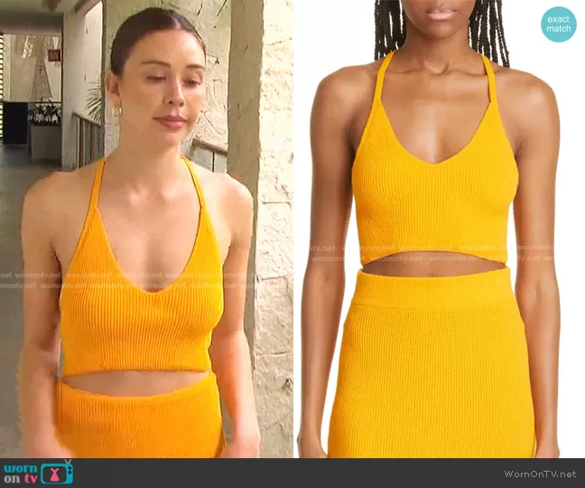 Gabriela Windey on The Bachelorette on ABC was spotted wearing this orange ribbed cropped top and skirt on The Bachelorette on episode 'Week 10' (19x10) in Sep 2022. Gabby's Top is the Soleil Rib Crop Top in Deep Yellow by Rag & Bone . Gabby's Skirt is the Soleil Skirt in Deep Yellow by Rag & Bone.