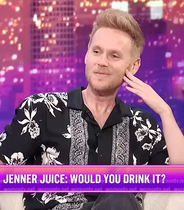 on E! News on E! was spotted wearing this Zach Noe Towers black floral print shirt on E! News Nightly Pop on Sep 08 2022's episode. 's Shirt is the Black and White Printed Shirt by The Kooples.