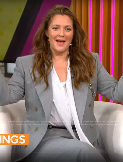 on CBS Mornings on CBS was spotted wearing this grey suit on CBS Mornings on Sep 12 2022's episode. 's Jacket is the Double-breasted wool jacket by Gucci . 's Pants is the Sharkskin wool pant by Gucci.