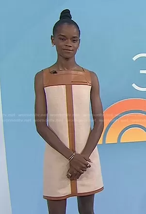 on Today on NBC was spotted wearing this beige leather trim shift dress on Today on Sep 13 2022's episode. 's Dress is the Ready To Wear Spring Summer 2022 by Hermes.
