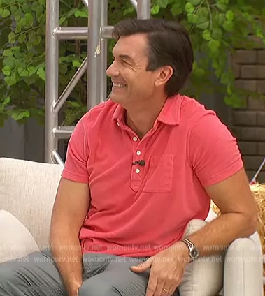 Jerry O'Connell on The Talk on CBS was spotted wearing this pink polo shirt on The Talk on Sep 13 2022's episode. Jerry's Shirt is the Terry Polo Shirt by Brooks Brothers.