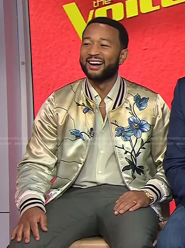 on Today on NBC was spotted wearing this floral bomber jacket on Today on Sep 14 2022's episode. 's Jacket is the Slim-Fit Bomber Jacket by Dries van Noten.