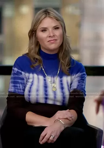 Jenna Bush Hager on Today on NBC was spotted wearing this tie dye ribbed turtleneck sweater on Today on Sep 15 2022's episode. Jenna's Sweater is the Dip-Dye Wool Turtleneck Sweater by Proenza Schouler White Label.