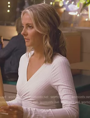 Taylor Ann Green on Southern Charm on Bravo TV was spotted wearing this white ribbed wrap top on Southern Charm on episode 'Trawlin' and Brawlin'' (8x14) in Sep 2022.