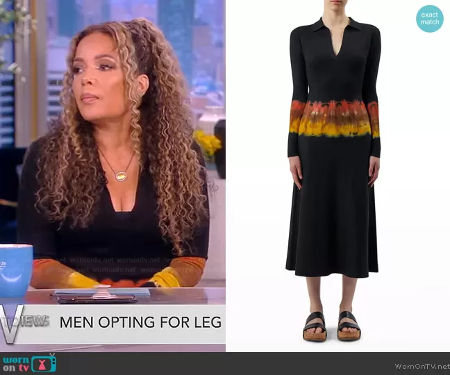 Sunny Hostin on The View on ABC was spotted wearing this black tie dye dress on The View on Sep 16 2022's episode. Sunny's Dress is the Beryl tie-dyed cashmere and silk-blend midi dress by Gabriela Hearst.