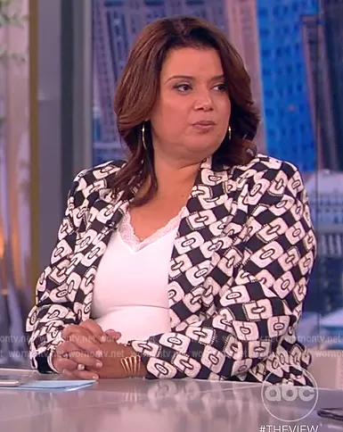Ana Navarro on The View on ABC was spotted wearing this printed blazer on The View on Sep 16 2022's episode. Ana's Blazer is the Gloria Blazer in Paisley Chainlink Black by Diane von Furstenberg.
