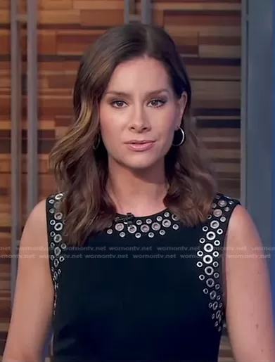 Rebecca Jarvis on Good Morning America on ABC was spotted wearing this black grommet dress on Good Morning America on Jun 15 2023's episode. Rebecca's Dress is the Knit Eyelet Embellished Sleeveless Midi Dress by Alexander Wang.
