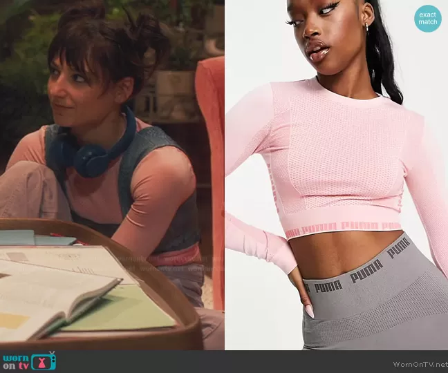 Top: Evoknit seamless long sleeve crop top in soft pink by Puma