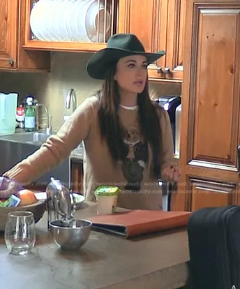 Kyle Richards on The Real Housewives of Beverly Hills on Bravo was spotted wearing this brown bear sweater on The Real Housewives of Beverly Hills on episode 'We Need to Talk About Kathy' (12x19) in Sep 2022. Kyle's Sweater is the Bear Sweater by Polo Ralph Lauren.