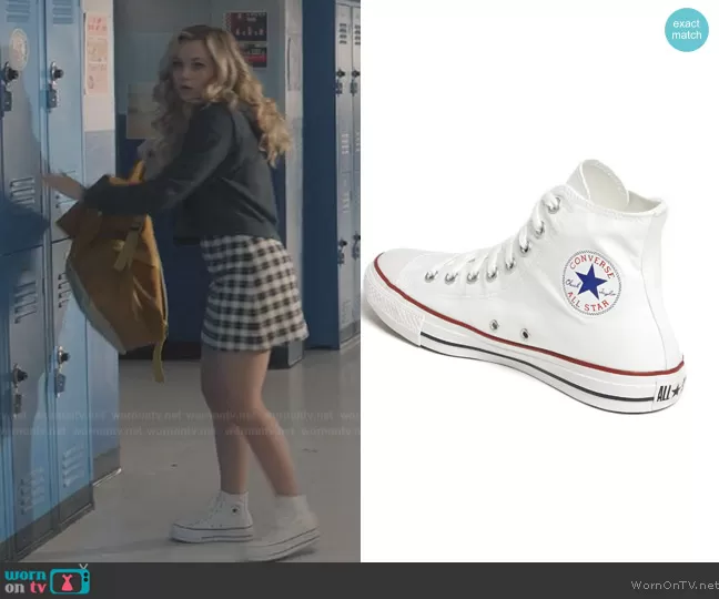 Courtney Whitemore (played by Brec Bassinger) on Stargirl on DC Universe was spotted wearing this white high top sneakers on Stargirl on episode 'The Evidence' (3x04) in Sep 2022. Courtney's Shoes is the All Star High Top Sneaker by Converse.