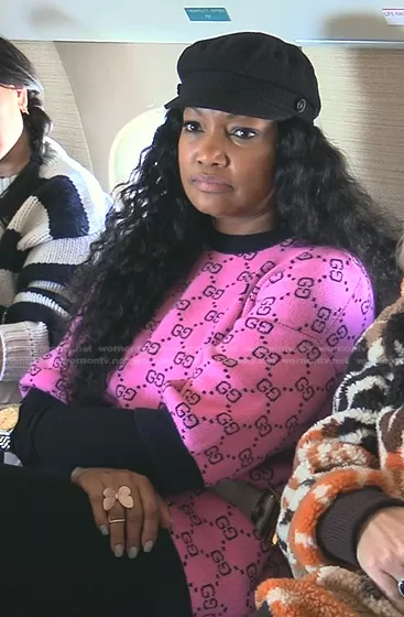 Garcelle Beauvais on The Real Housewives of Beverly Hills on Bravo was spotted wearing this pink print sweater on The Real Housewives of Beverly Hills on episode 'We Need to Talk About Kathy' (12x19) in Sep 2022. Garcelle's Sweater is the GG Short Sleeves Sweater by Gucci.