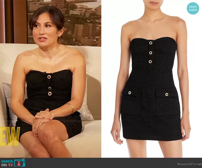 on The Drew Barrymore Show on CBS was spotted wearing this black textured strapless dress on The Drew Barrymore Show on Sep 22 2022's episode. 's Dress is the Strapless Mini Dress by Aqua.