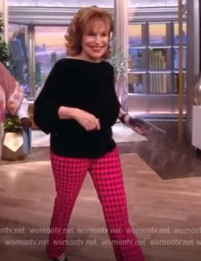 Joy Behar on The View on ABC was spotted wearing this pink houndstooth pants on The View on Sep 22 2022's episode. Joy's Pants is the Olivia Houndstooth Bootcut Pants by Alice + Olivia.