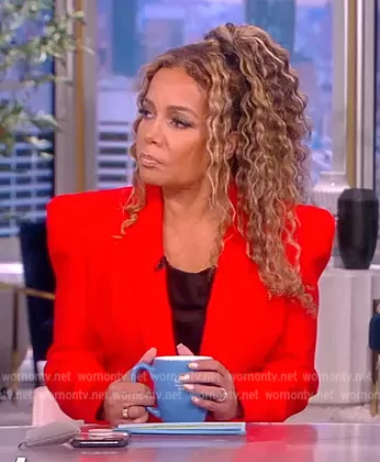 Sunny Hostin on The View on ABC was spotted wearing this padded shoulder blazer on The View on Sep 23 2022's episode. Sunny's Blazer is the Stretch-wool crepe blazer by Sergio Hudson . Sunny's Pants is the Stretch-wool crepe wide-leg pants by Sergio Hudson.