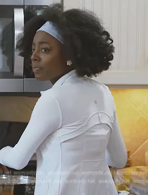 Venita Aspen on Southern Charm on Bravo TV was spotted wearing this white track jacket on Southern Charm on episode 'Trawlin' and Brawlin'' (8x14) in Sep 2022. Venita's Jacket is the Forme Jacket by Lululemon.