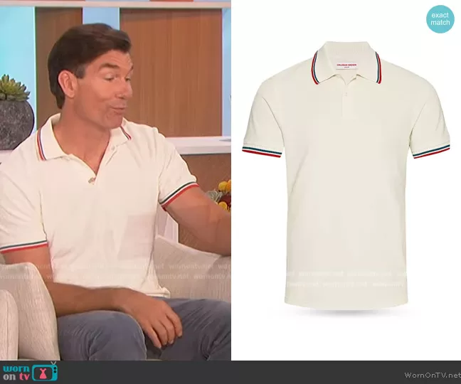 Jerry O'Connell on The Talk on CBS was spotted wearing this white stripe trim polo on The Talk on Sep 29 2022's episode. Jerry's Shirt is the Jarrett striped polo shirt by Orlebar Brown.