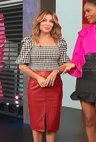 Kit Hoover on Access Hollywood on NBC was spotted wearing this black gingham check top on Access Hollywood on Oct 04 2022's episode. Kit's Top is the Keys to The Gingham Top by BB Dakota by Steve Madden.